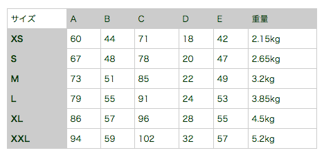 ステンレスメッシュシャツサイズ表 (単位:cm)